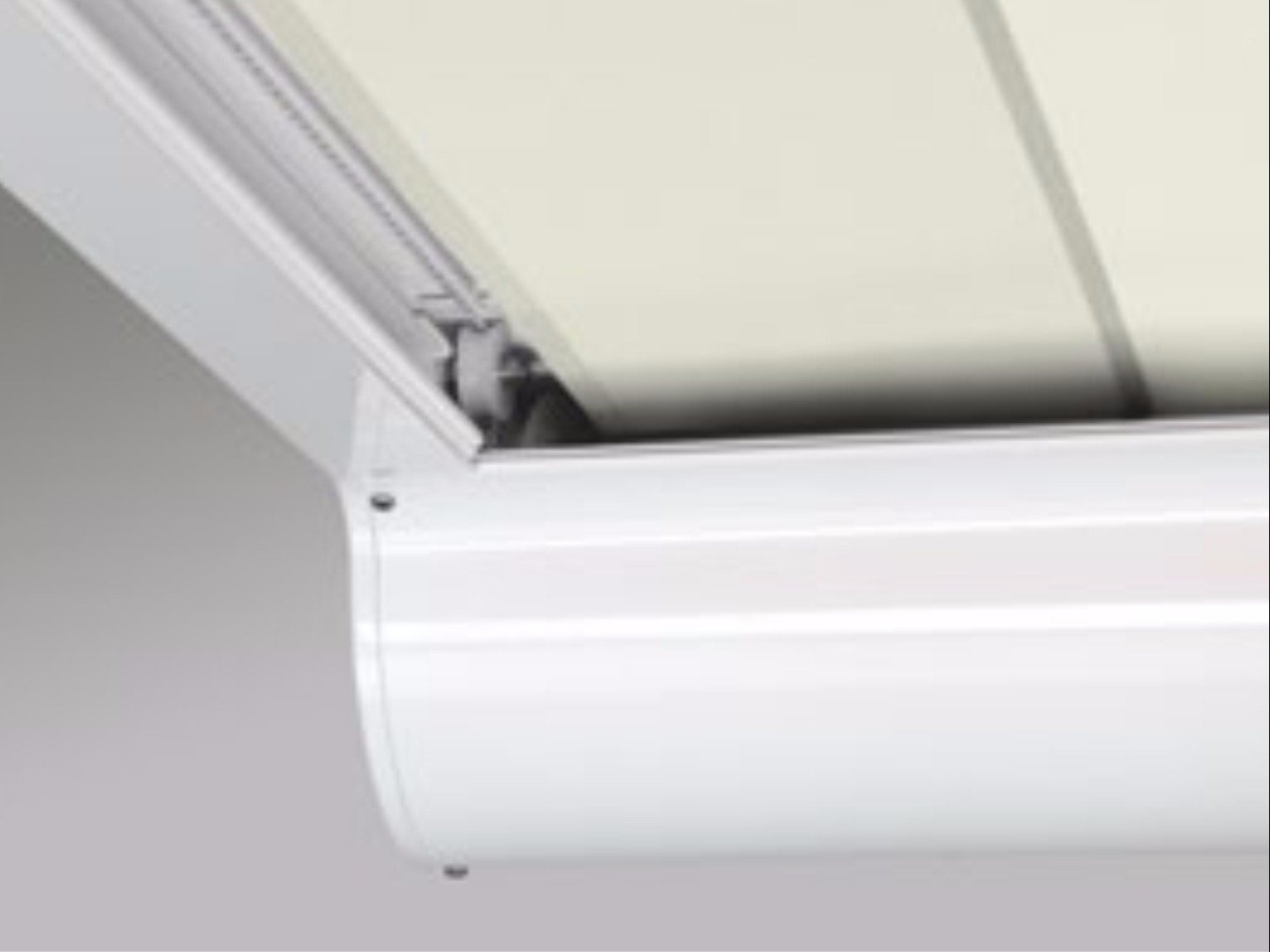 Unterhalb des Glasdaches montiert, perfekter Schutz für das Tuch vor der Witterung, auch im ausgefahrenen Zustand