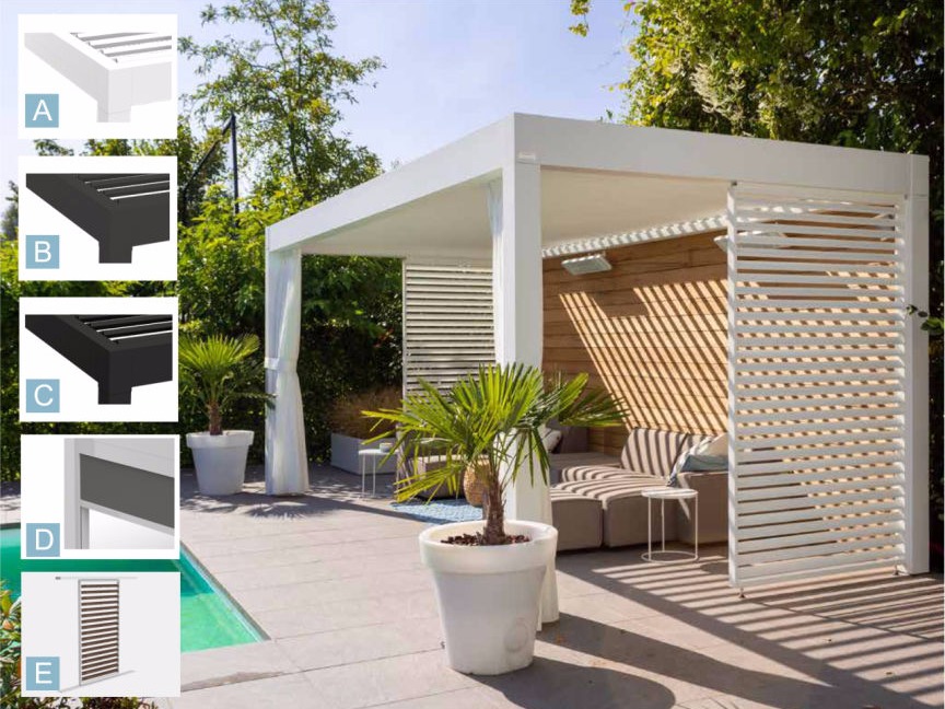Das Lamellendach V870 Arezzo kann mit folgenden Optionen erweitert werden: